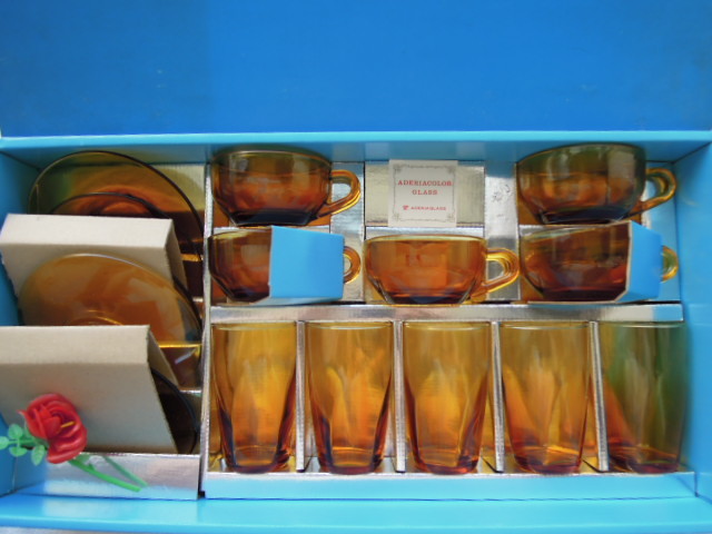アデリア ティーカップ、ソーサー、グラスにアデリアのマークが入っています