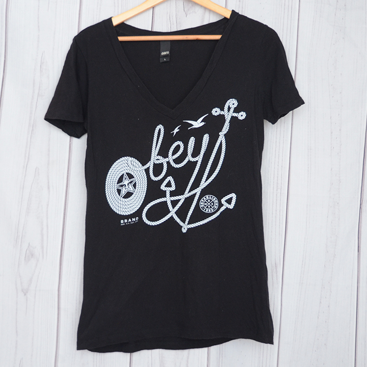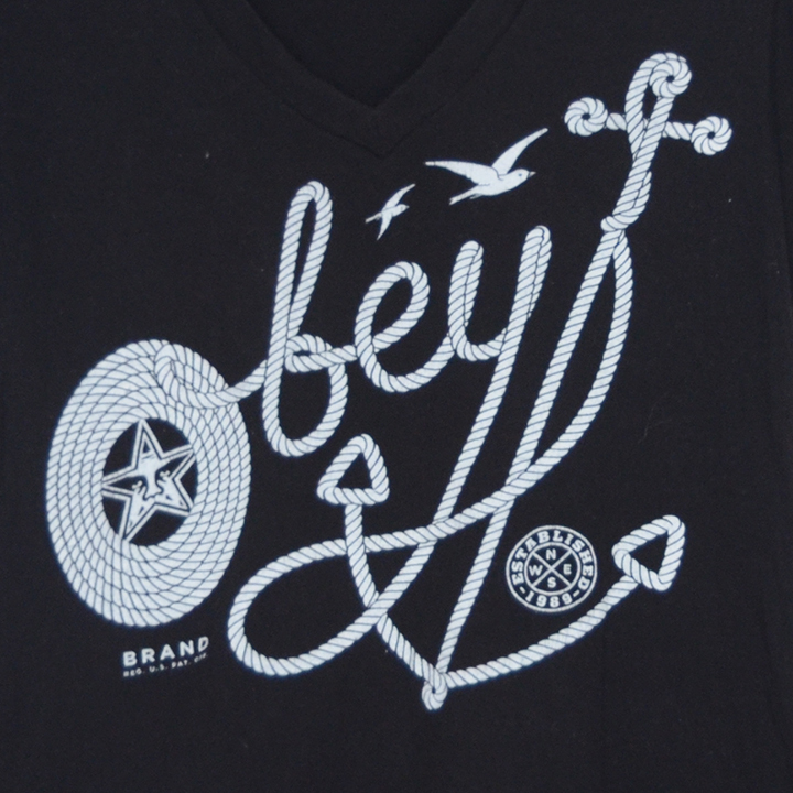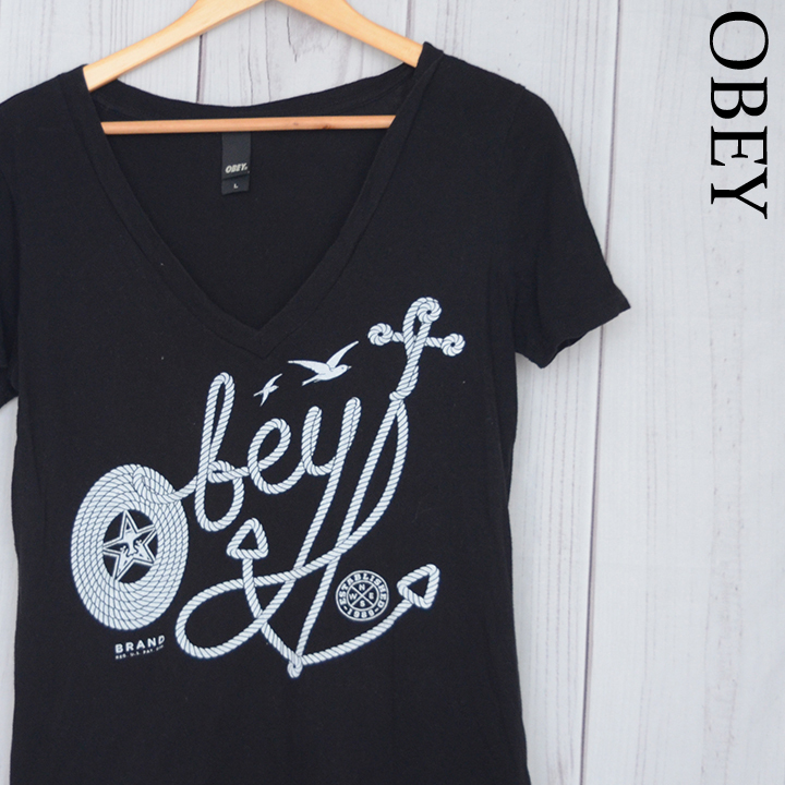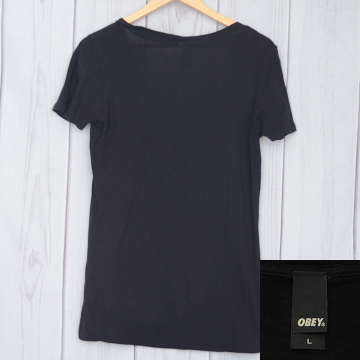 ST2245 オベイ OBEY Tシャツ レディース L 肩44 プロパガンダ メール便可 xq