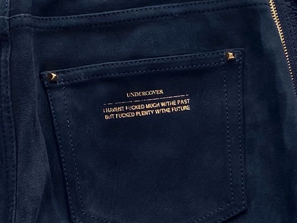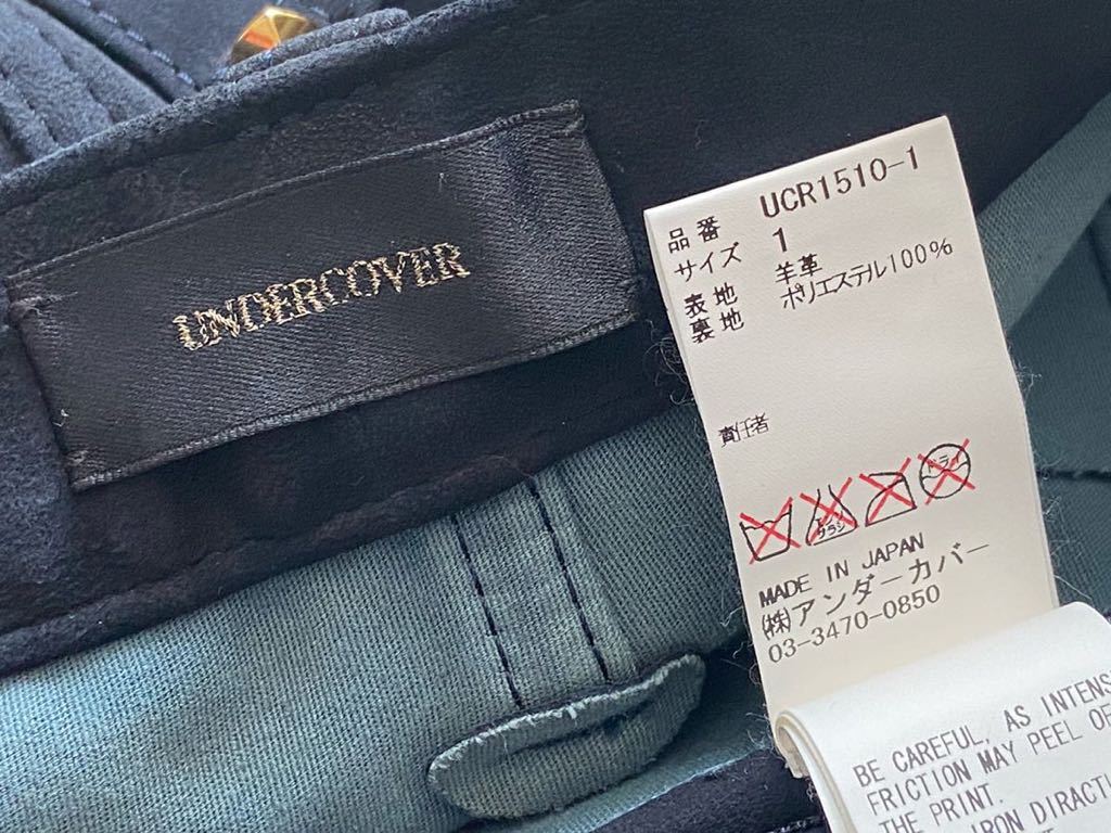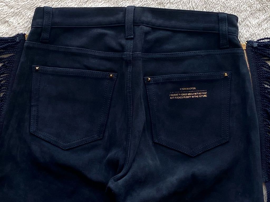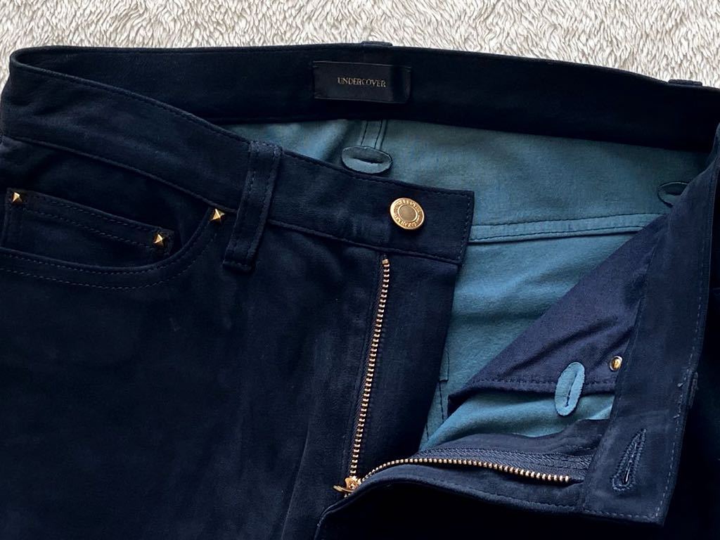 UNDERCOVER size1 羊革 レザーパンツ メンズ ネイビー ブルー 青 蒼 スキニー アンダーカバー フリンジ付き 日本製 ストレッチ