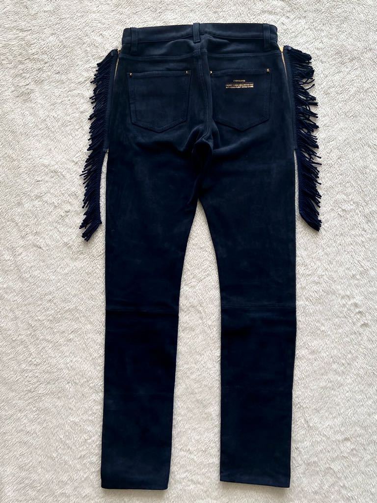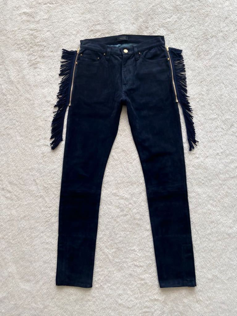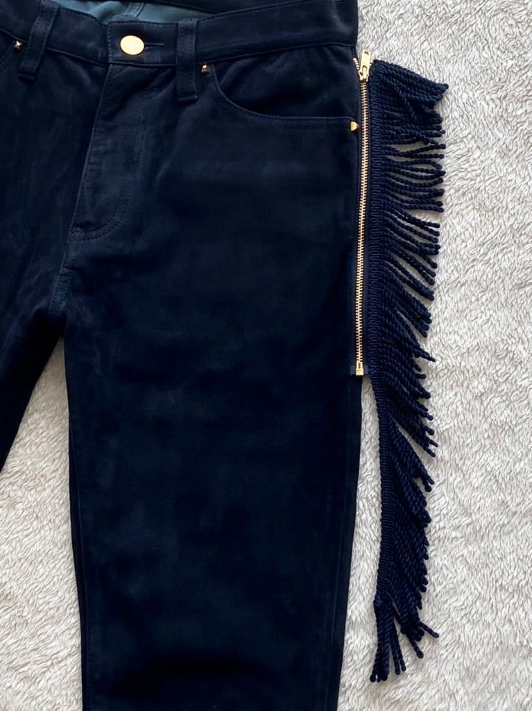 ・風合いの良い上質なsheepskin(羊革)を使用し計算された細身で美しいスキニー系シルエットに取り外し可能なフリンジ使いが雰囲気抜群でとてもお洒落なレザーパンツになります。