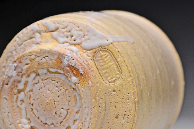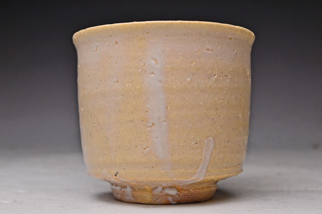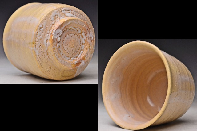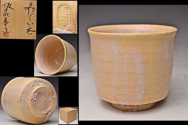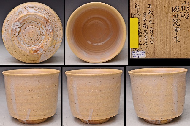 坂田泥華 13代 ★ 萩ぐい呑 ★ 共箱 ★ 気品のある枇杷色に梅花皮の釉景の良い逸品 ★ 酒器 ★ 坂田泥珠 天耳庵 ★検 坂田慶造 ★