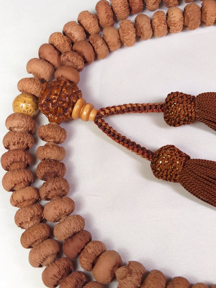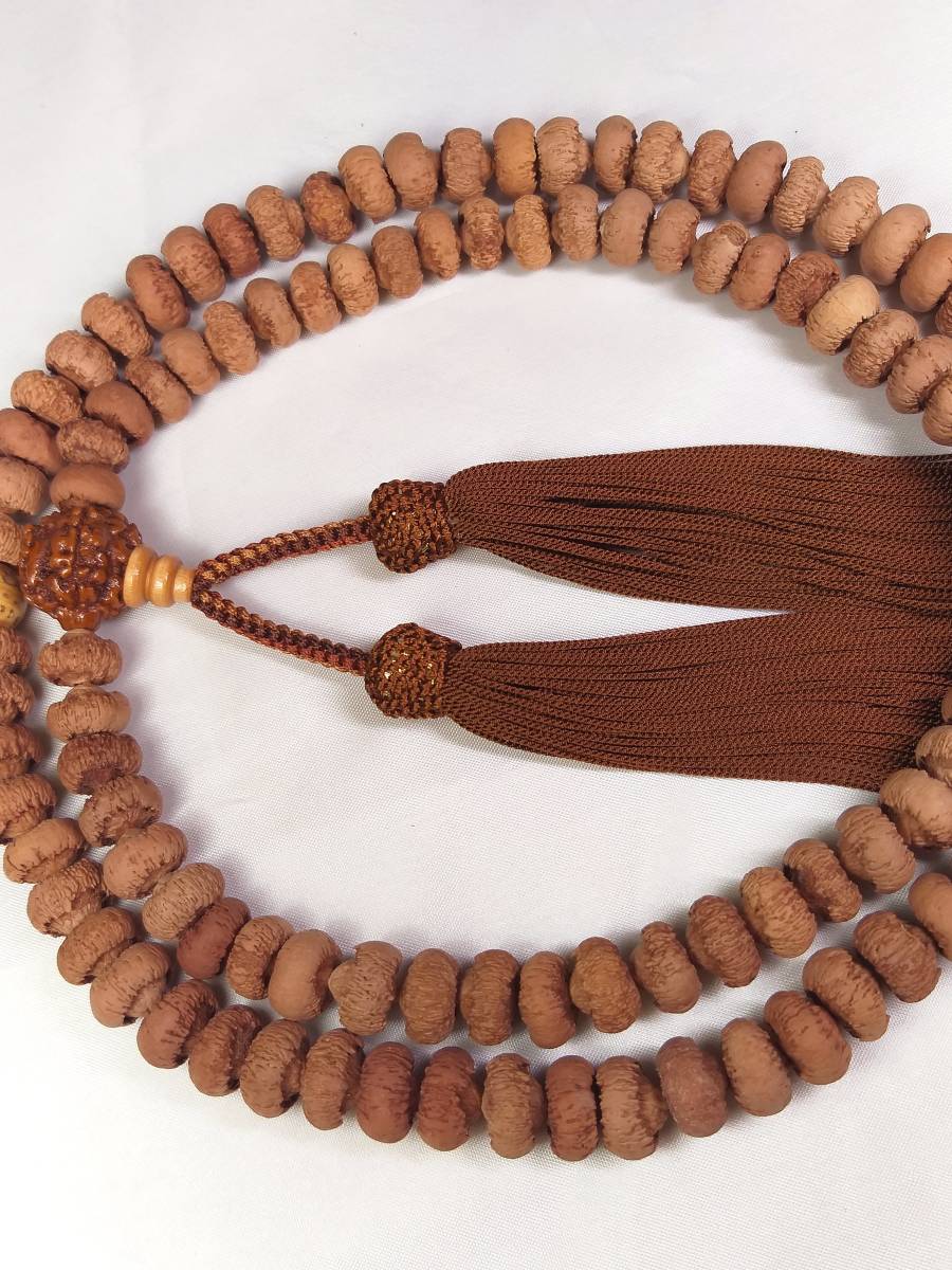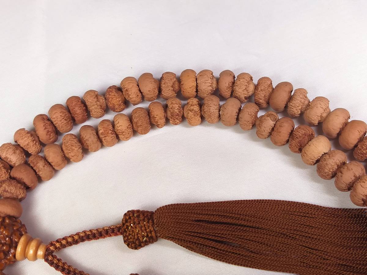 下部に追加しました写真4枚をご覧下さい。そのうちの1枚目は、お客様が私の手元から購入された同質のインド野生蓮華菩提数珠の玉です。