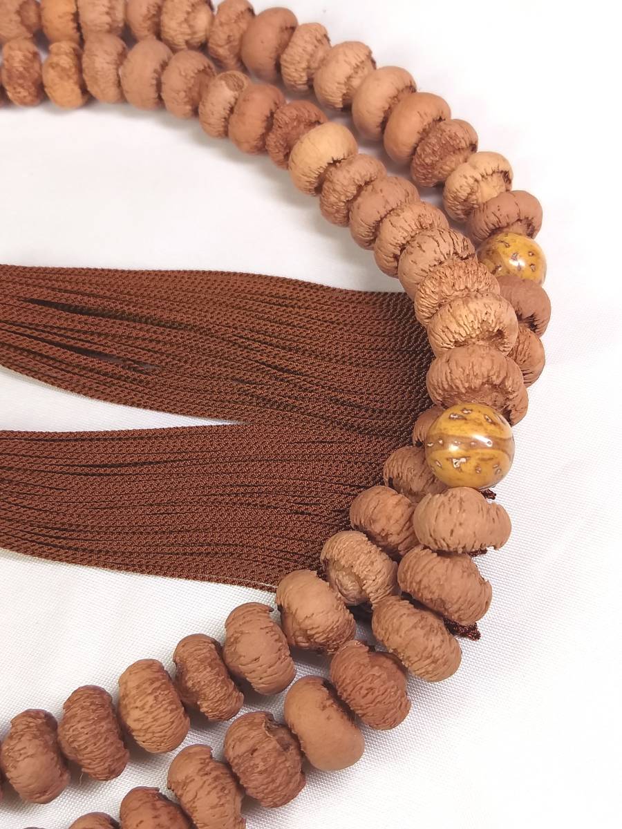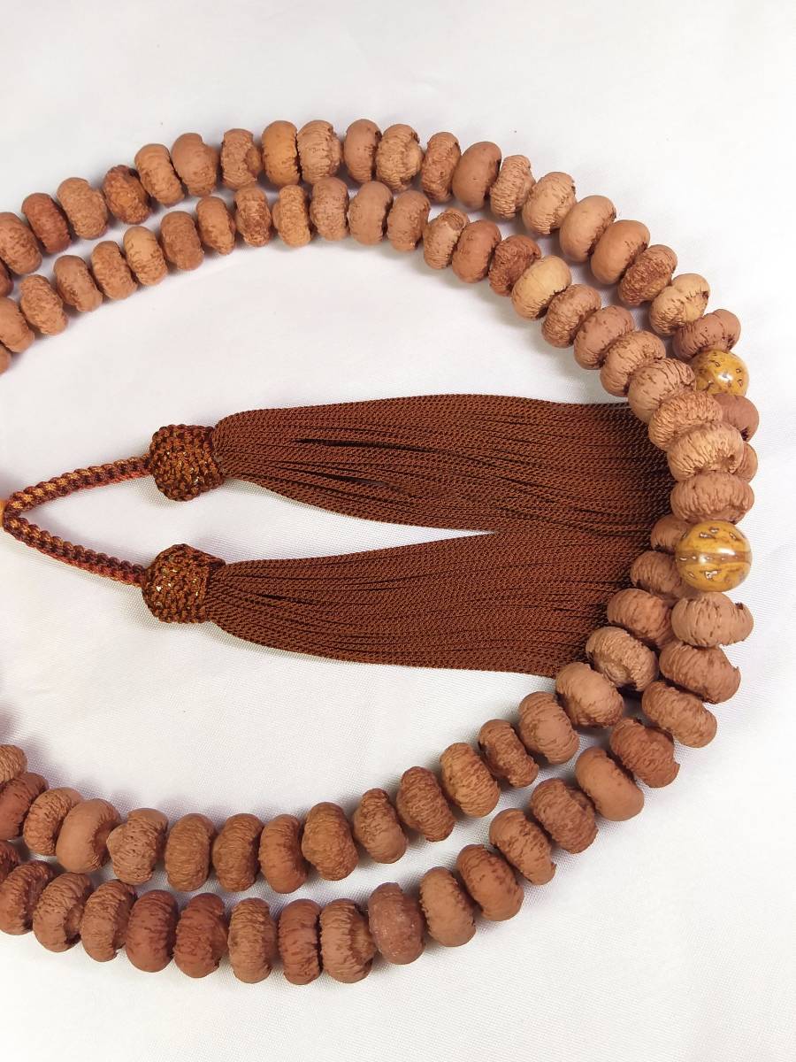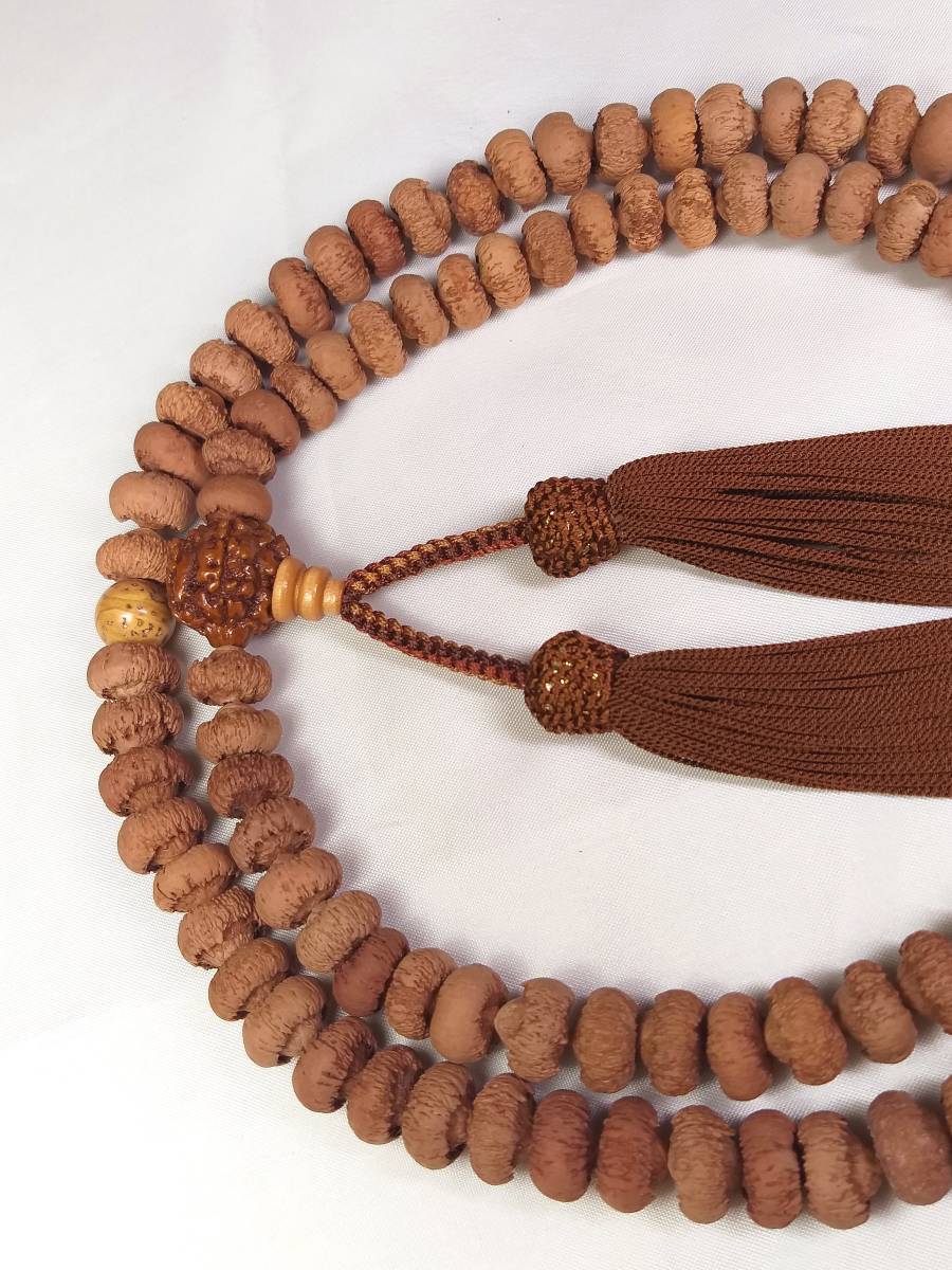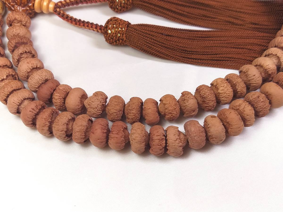 下部に追加しました写真4枚をご覧下さい。そのうちの1枚目は、お客様が私の手元から購入された同質のインド野生蓮華菩提数珠の玉です。