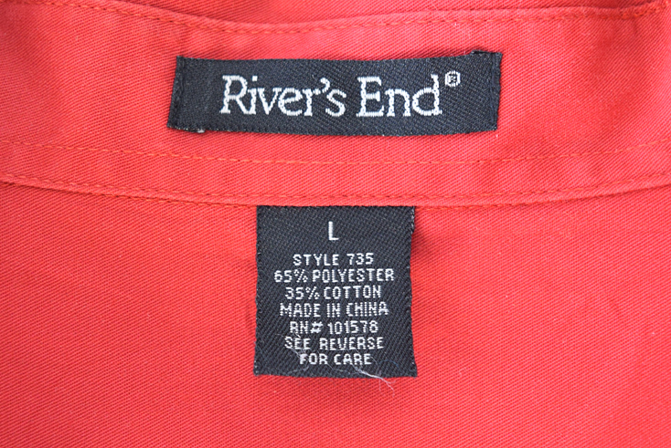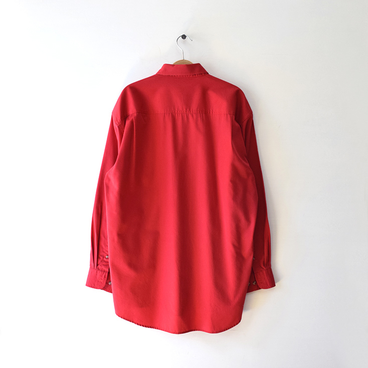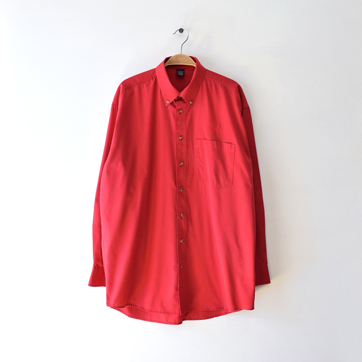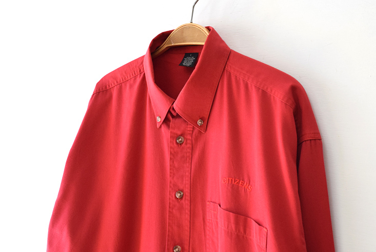 【送料無料】USA古着 CITIZENS シチズンズ 刺繍 ワークシャツ 長袖シャツ BDシャツ 赤色 レッド ポリ/コットン メンズL 古着 CA0456