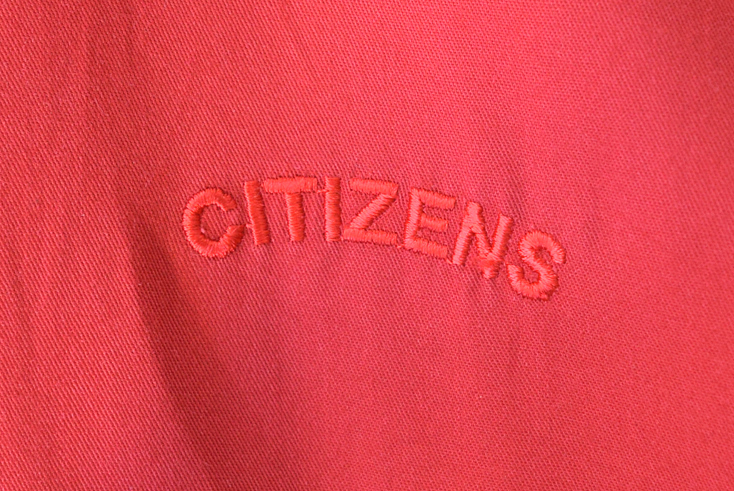 USA古着 CITIZENS シチズンズ 刺繍 ワークシャツ 長袖シャツ BDシャツ 赤色 ポリ/コットン メンズL CA0456