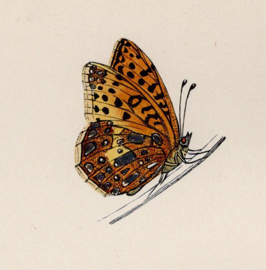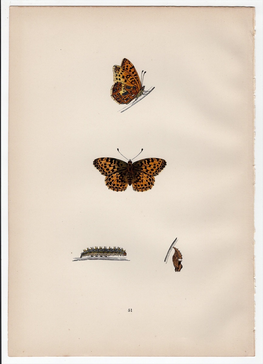 1890年 Morris 英国蝶類史 木版画 手彩色 Pl.51 タテハチョウ科 スペインヒョウモン属 スペインヒョウモン 博物画