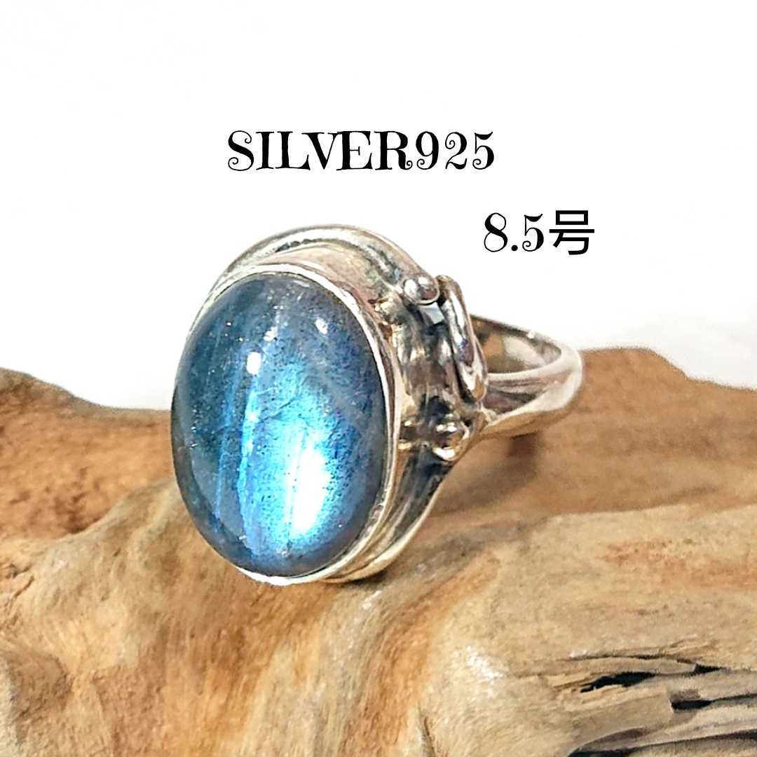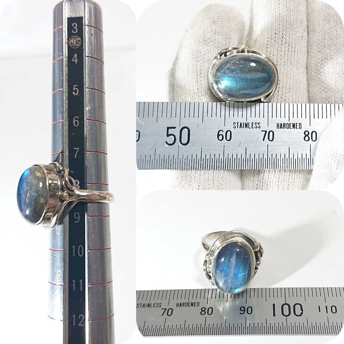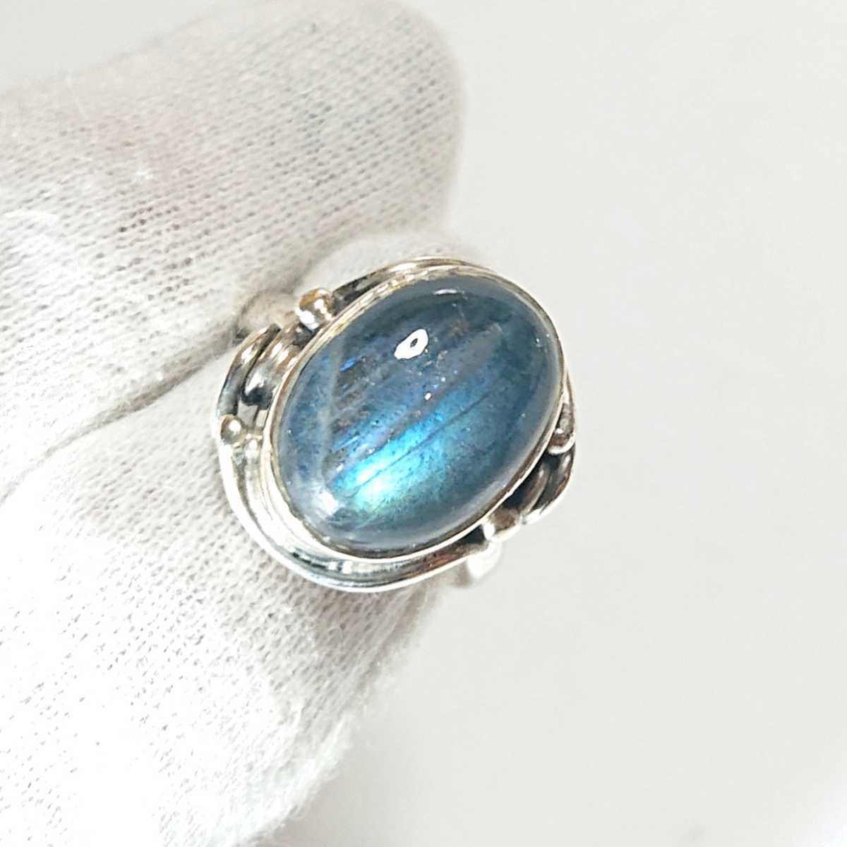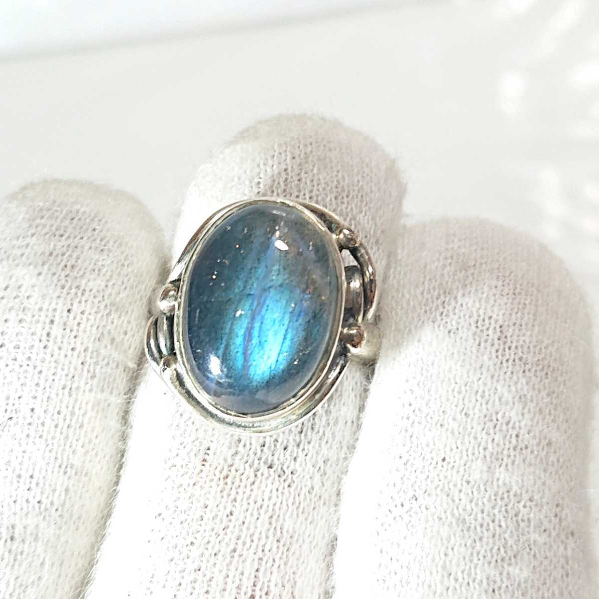 こちらはラブラドライトリングシリーズの中でもブルーが濃いめで着けた時の存在感と映え感があります☆