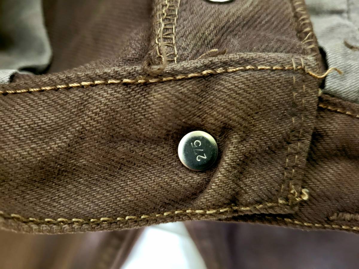 カーキオリーブと言った感じのカラーの一着です、サイズはw28です。