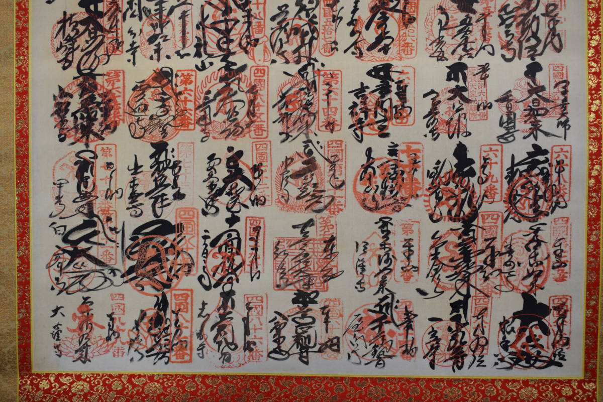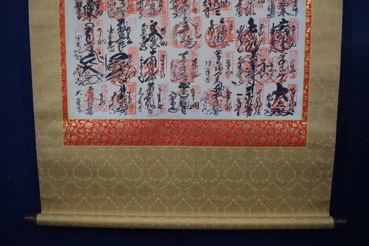 真作/四国八十八ヶ所/八十八箇所/霊場集印肉筆掛軸/仏掛軸/御朱印/掛軸☆宝船☆Y-516