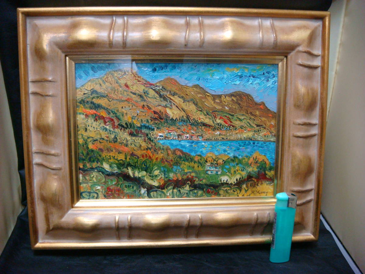 出てきたままの状態です。加納 博之さんの油彩画です。「伊豆の港」