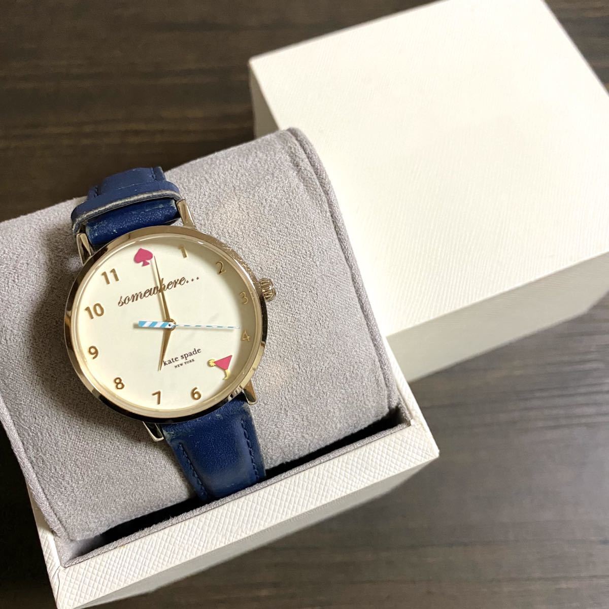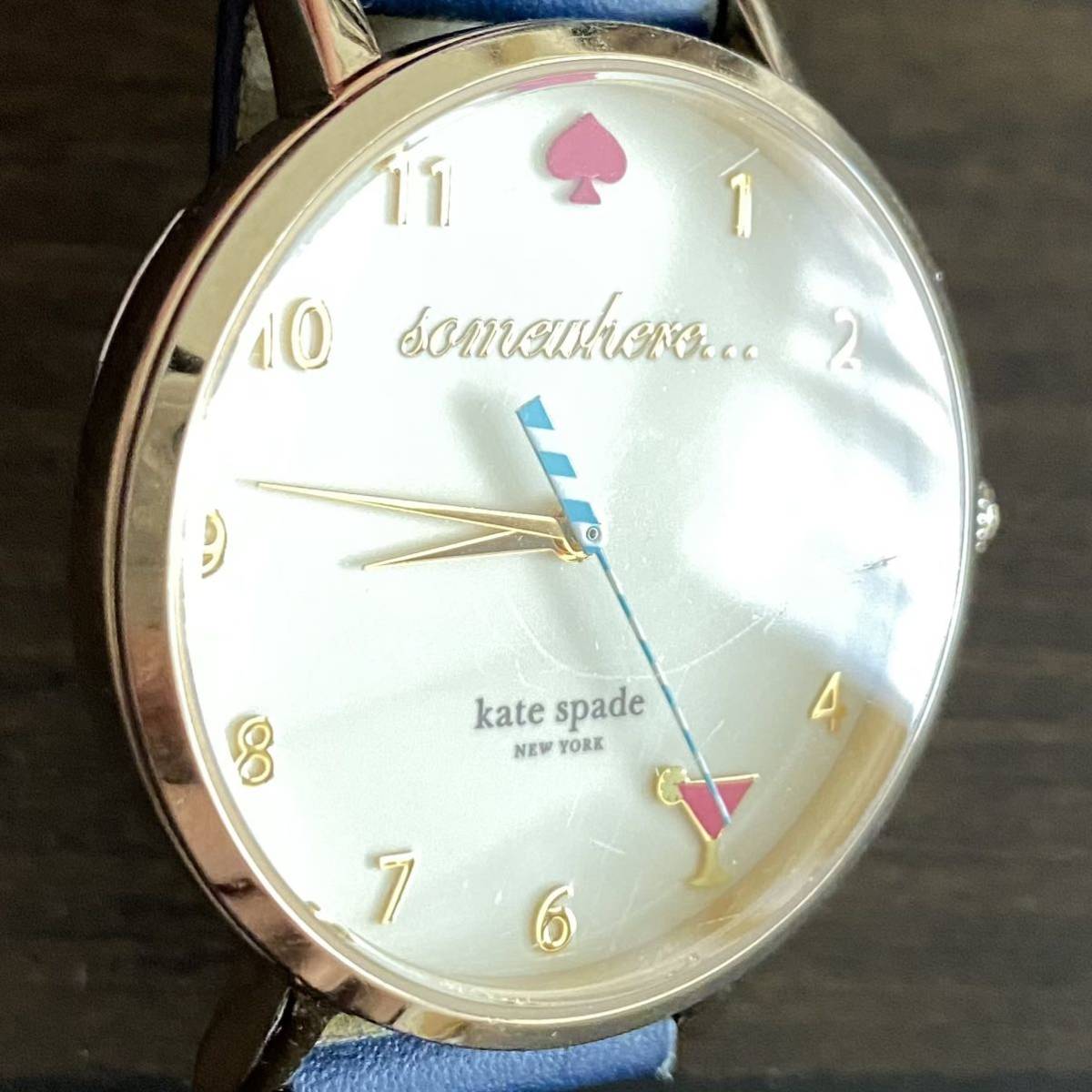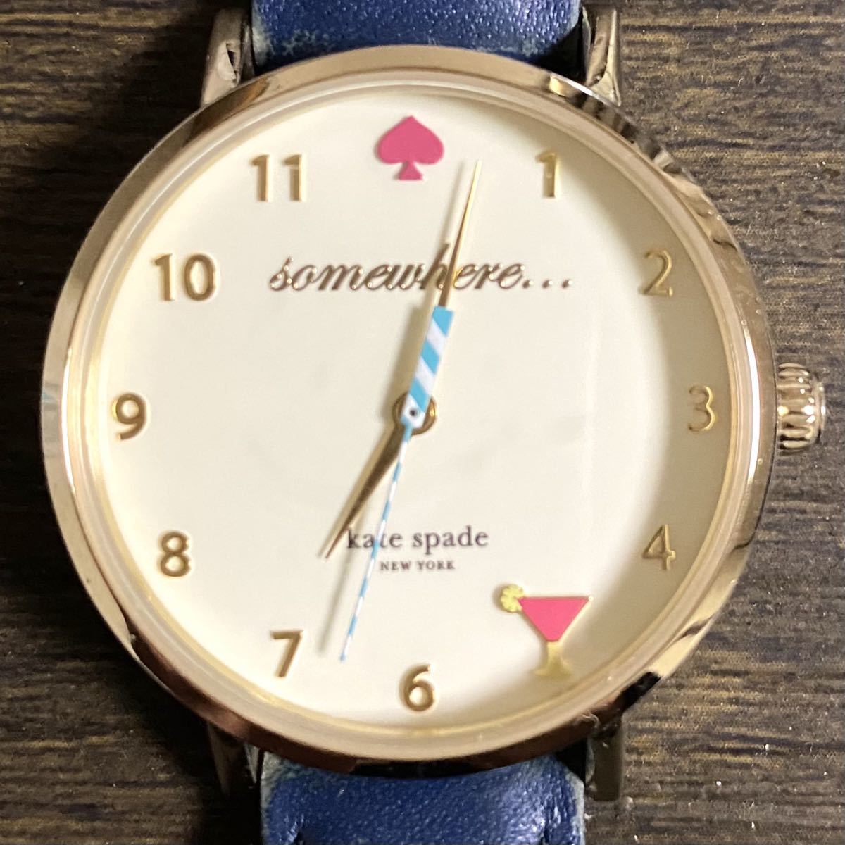 人気ブランド、ケイトスペードのホワイトカラー腕時計になります!文字盤の5時部分がカクテルになっているのと、秒針が螺旋状の2色になっておりポップでとても可愛いデザインです。