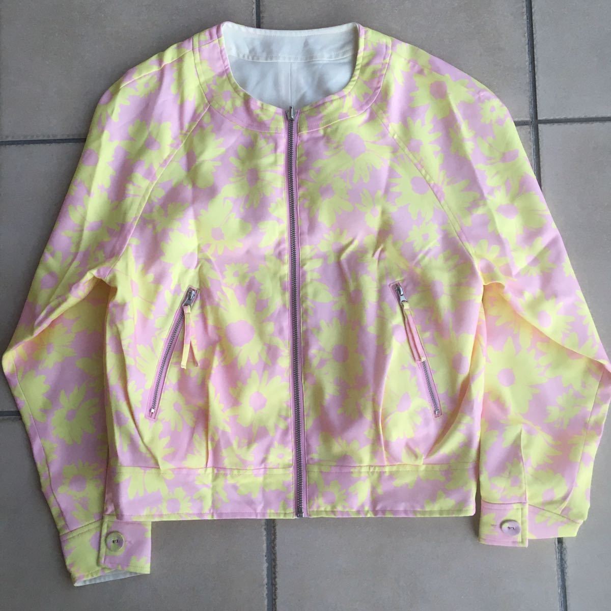 総マーガレット柄で、存在感抜群に仕上げたブルゾン。気分やスタイリングに合わせてアレンジが楽しめる、無地とのリバーシブルタイプも◎。スッキリとしたノーカラーデザインです。