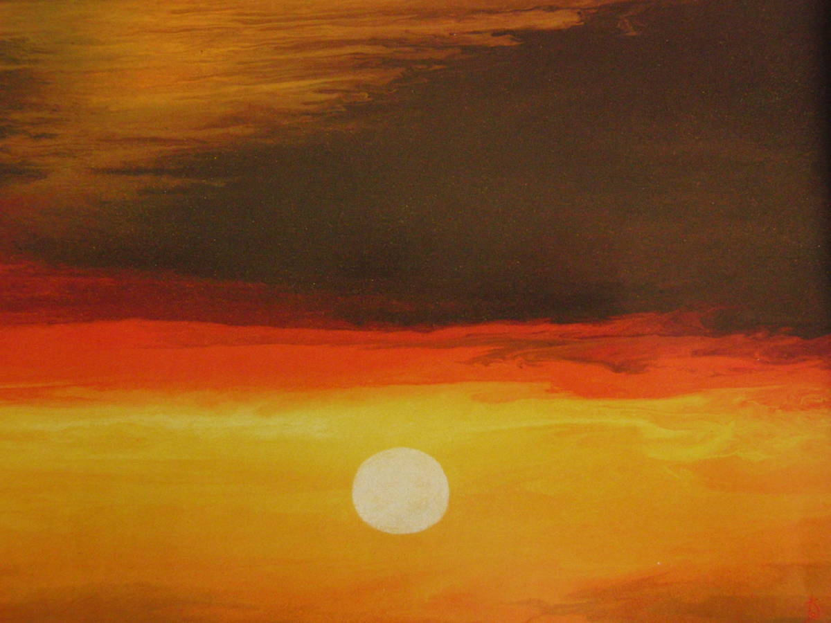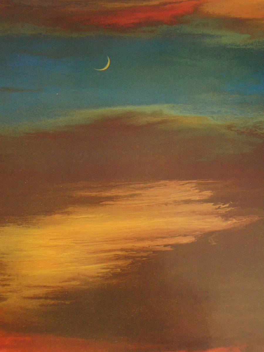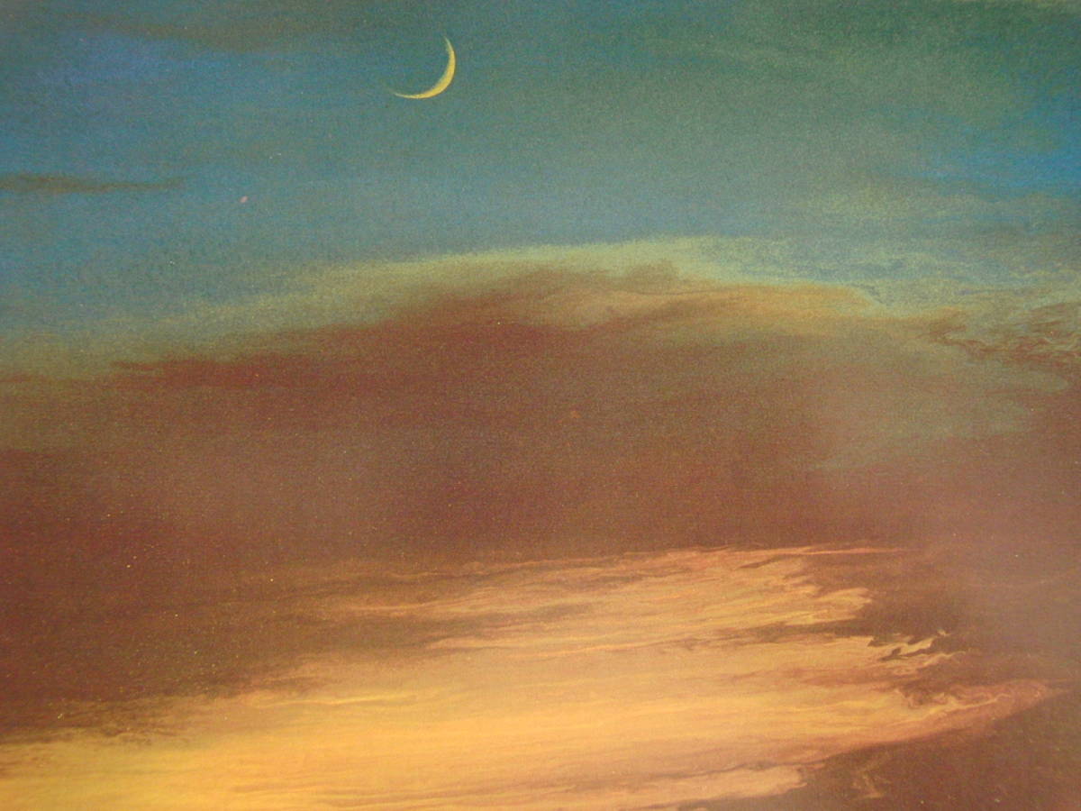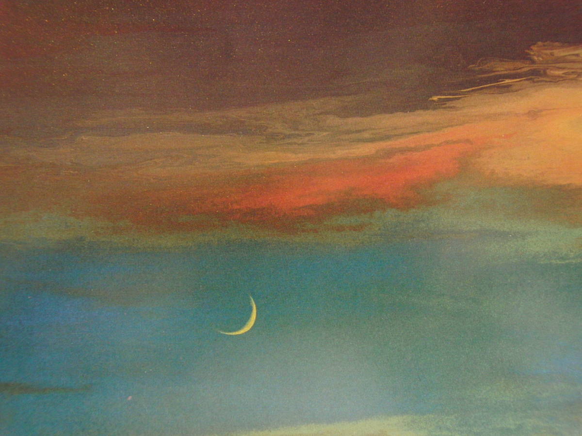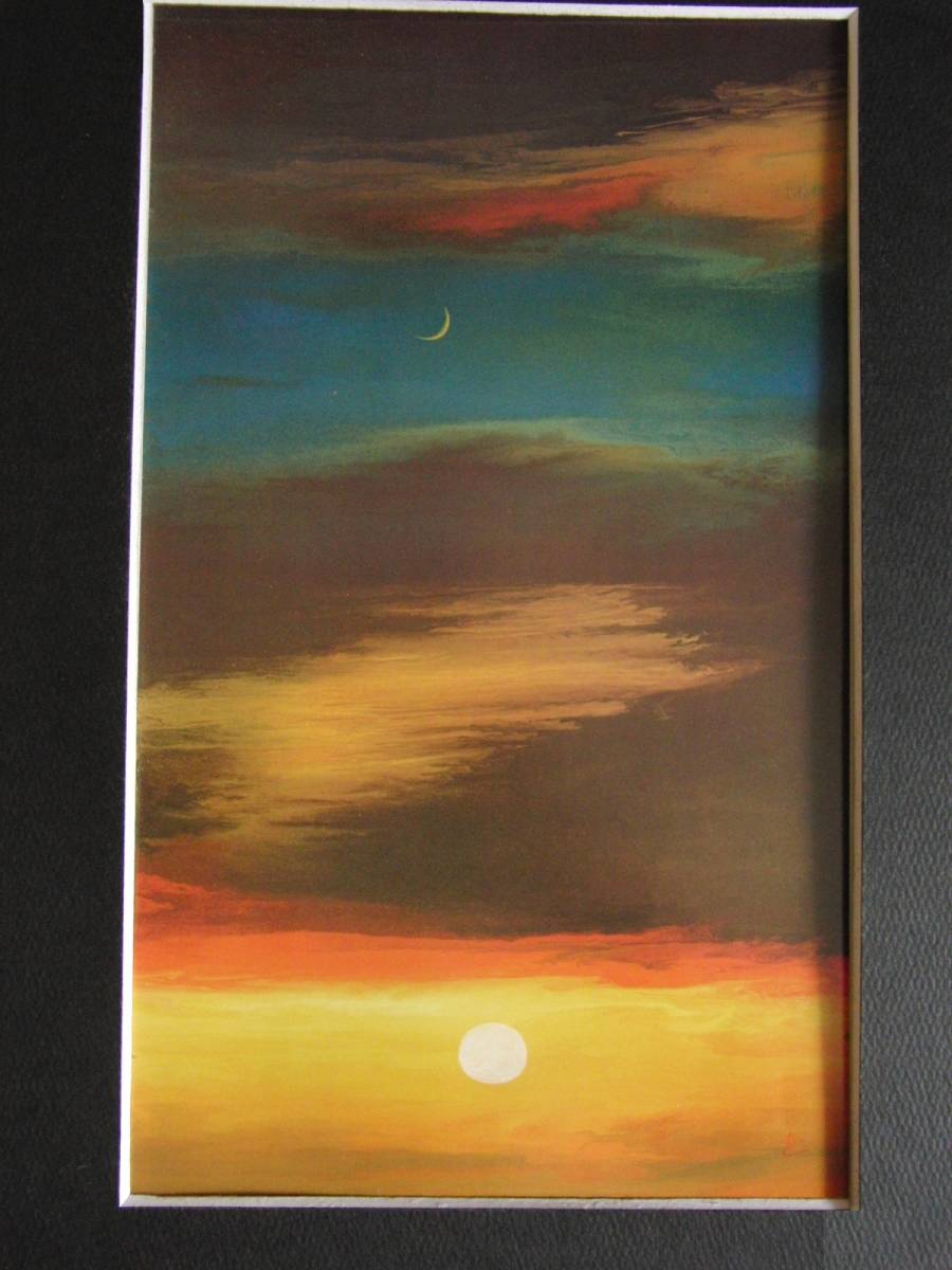 鎮西直秀、【夕陽と月の恋】、希少な額装用画集より、新品額装付、状態良好、送料込み