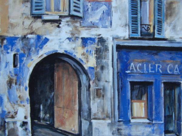 荻須 高徳、青い店、希少画集画、新品額付、状態良好mai