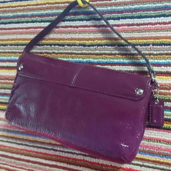 COACH コーチ ポーチ エナメル ハンドバッグ パープル 中古品 B049