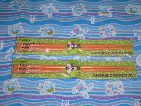 JAバンク「ちょリス 箸 2本セット」の新品です。長さは約19.5cmくらいです。台紙の初期からの曲り、若干のスレ等が見られます。封筒に直接入れての発送となり、送料は定形外郵便でギリギリ140円です。以上の事をふまえて「自己紹介欄を確認してから入札をお願いします」。