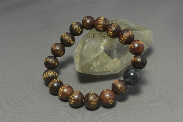 | 商品説明 | 紫檀 約 12mm 17粒 ブラックルチル 約 13mm 1粒 内周 約 17cm |