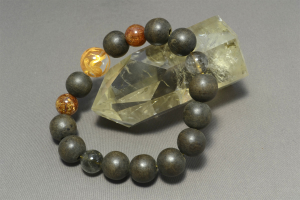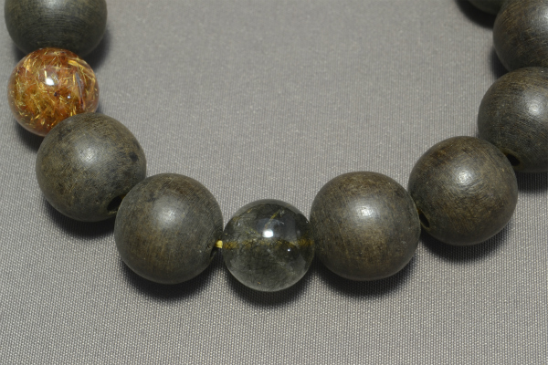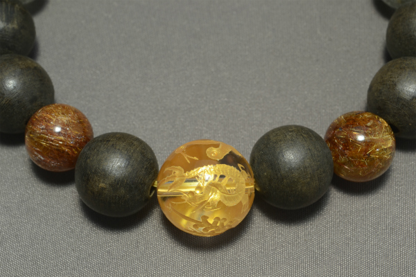 商品説明 | 沈香 約 14mm 12粒 四神彫刻 水晶 約 16mm 1粒 ルチル 約 12mm 2粒 ブラックルチル 約 11.5mm 2粒 内周 約 18.5cm |