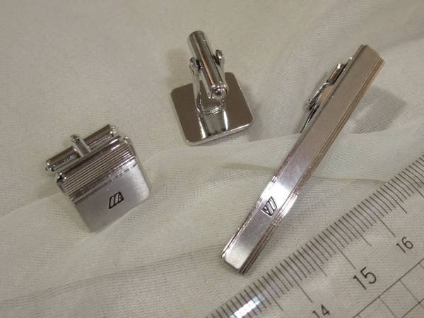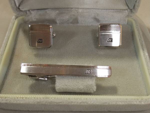 画像の、デザインがとても良い感じのカフスリンクスカフスボタンとネクタイピンの出品です♪日本のデパートあたりで購入後、そのまま手持ちにしていた、やや経年感はあるものの、未使用美品です♪