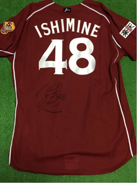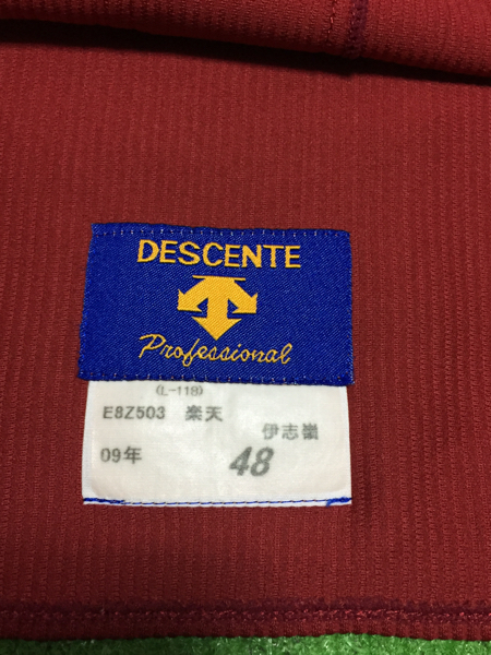 東北楽天イーグルスの伊志嶺選手が’09シーズンに実使用した直筆サイン入りユニフォームです。