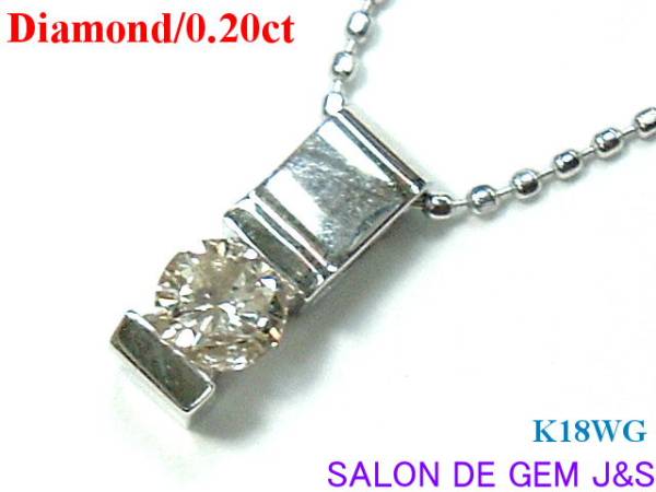 【送料無料】【一粒ダイヤモンド】【K18WG:高級天然ダイヤモンド ペンダントネックレス】D0.20ct/K18WG:45cmフリーチェーン/2.4g