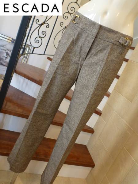 超美品エスカーダ ESCADA 茶ツイードパンツ34
