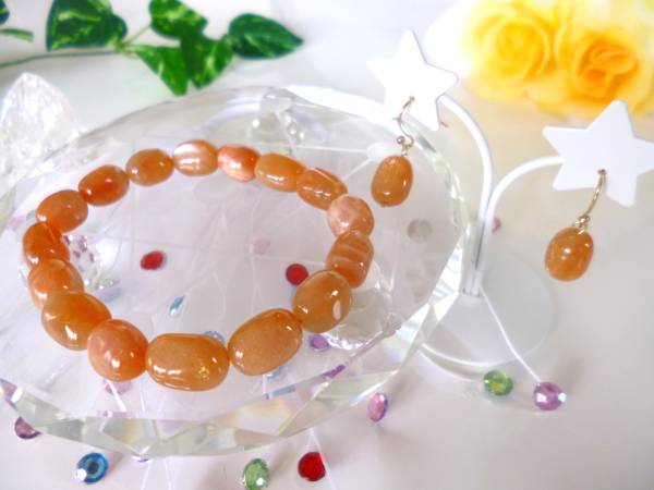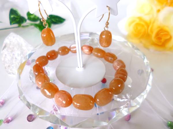 ★月と太陽のパワー★希望の光★恋愛成就★太陽のエネルギー★AAオレンジムーンストーン★可愛いタンブル♪ ★ピアスセット★16cm★