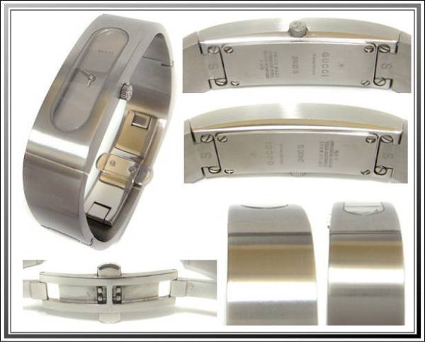 ご覧頂きましてありがとうございます☆ GUCCI/グッチ 時計 レディースウォッチ 2400S バングルタイプになります。 もちろん本物です。当店鑑定済み☆ ブランド GUCCI/グッチ 品名 レディースウォッチ シリアル 0023*** 型番 2400S サイズ ケース約4cm× 1.4cm (リューズ含まず) ベルト幅約1.4cm 腕周り約15.5cm前後 ムーブメント クォーツ カラー シルバー 素材 ステンレススチール 防水 日常生活防水 3ATM 付属品 ケース 取扱説明書 ギャランティ 管理番号 2934-7 |