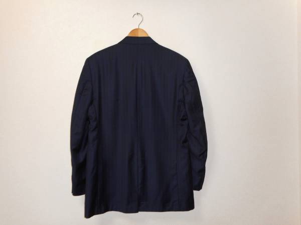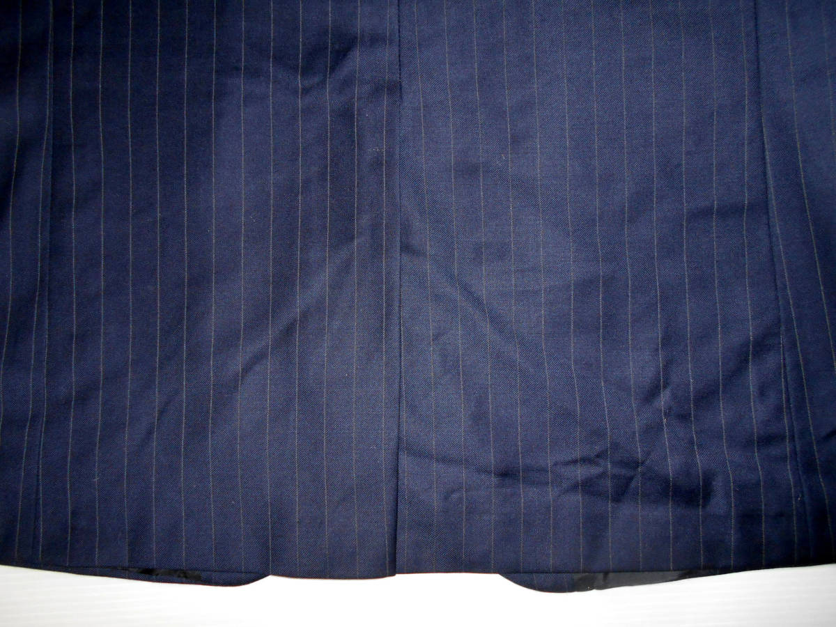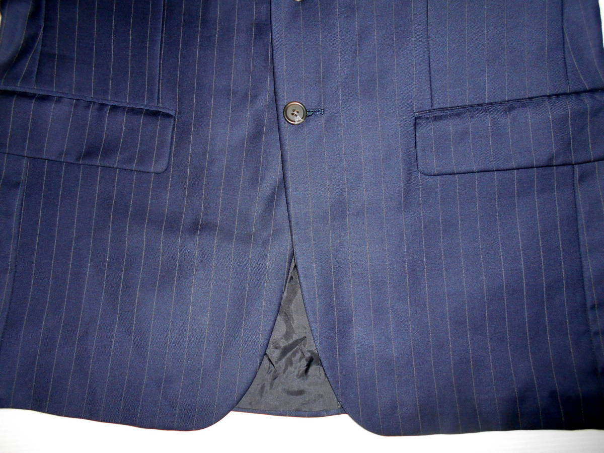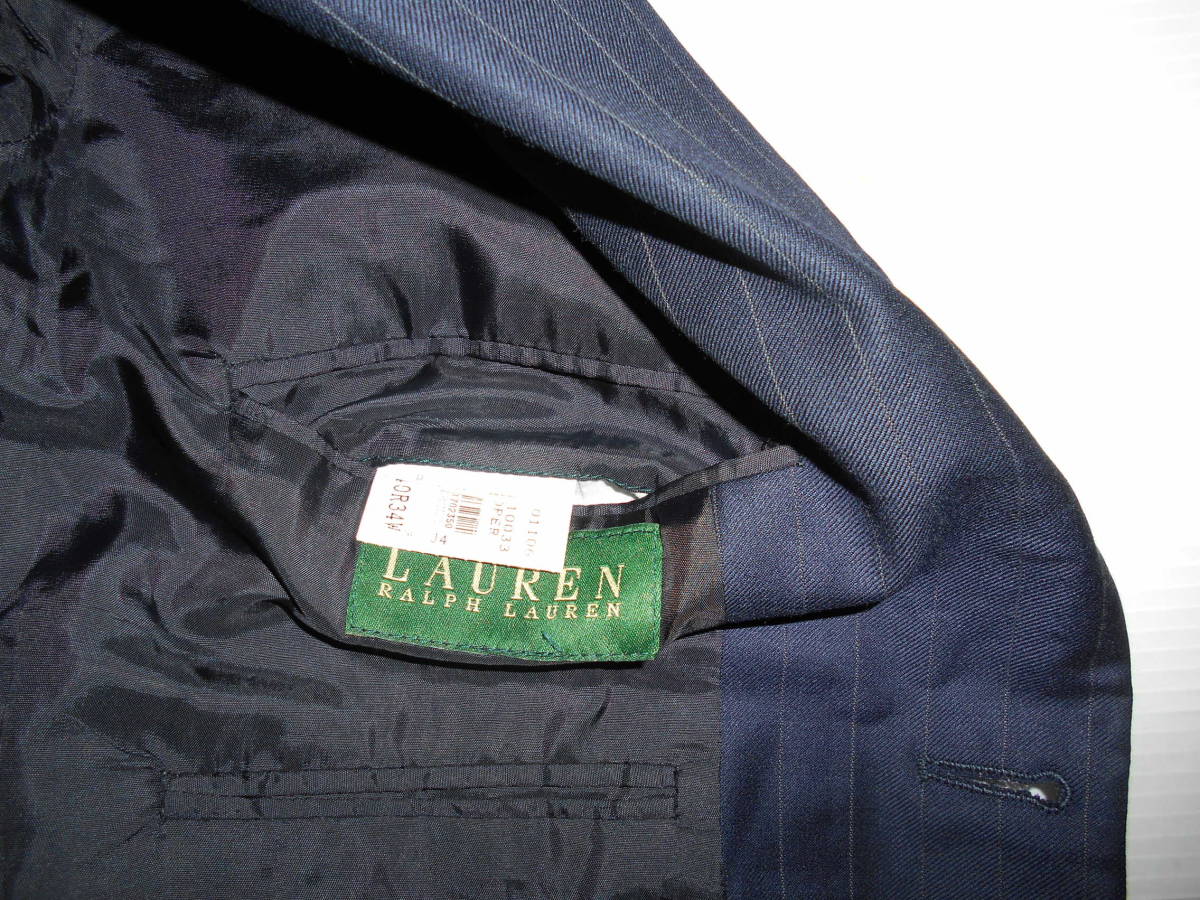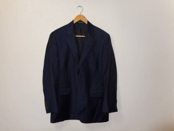 カナダ製★RALPH LAUREN ラルフローレン シングル ジャケット ストライプ柄 紺 カナダ製の正規品です。素材は品質表記薄くなっておりはっきり判りません。色は紺地です。 センターベントです。