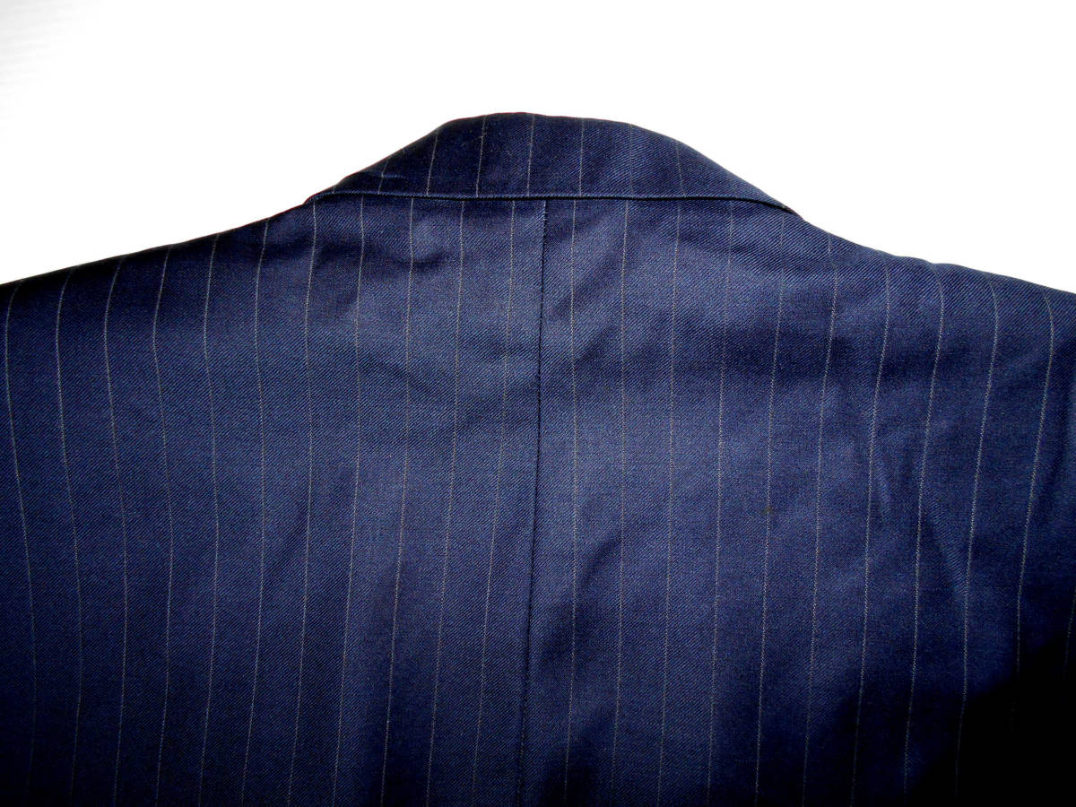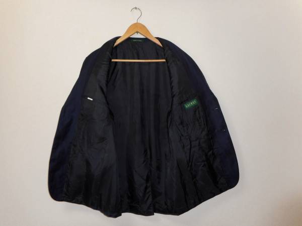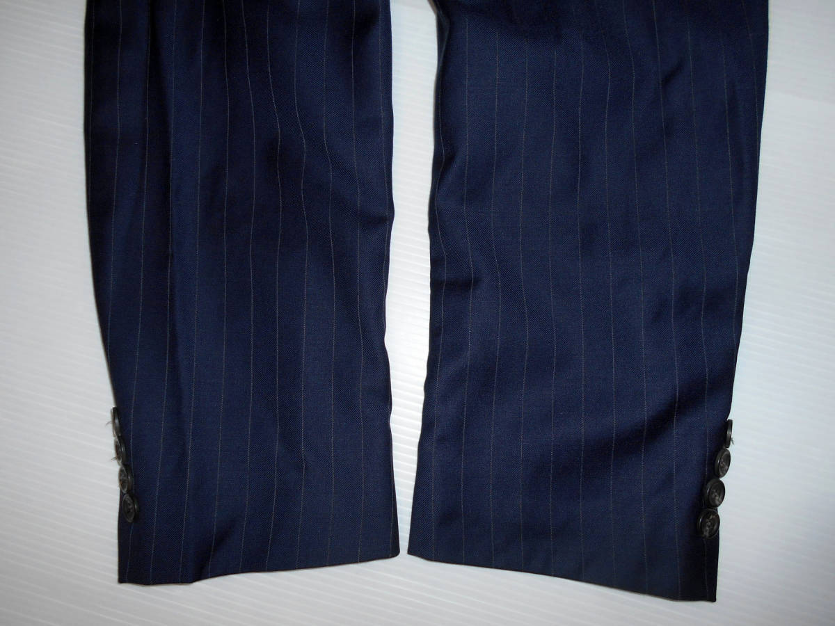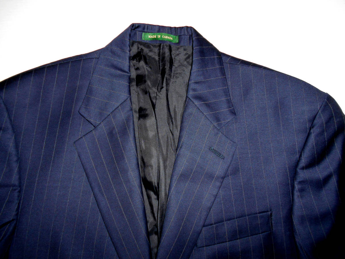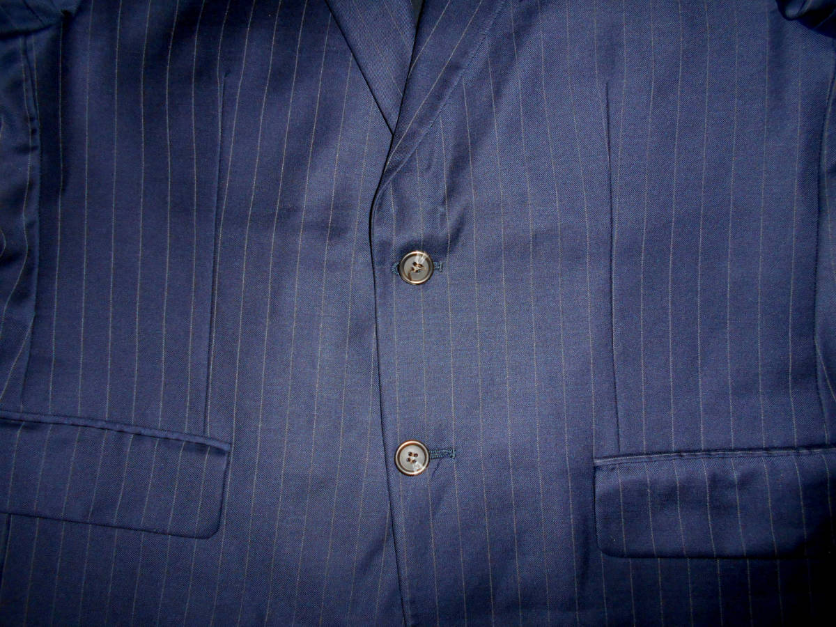 カナダ製★RALPH LAUREN ラルフローレン シングル ジャケット ストライプ柄 紺 カナダ製の正規品です。素材は品質表記薄くなっておりはっきり判りません。色は紺地です。 センターベントです。