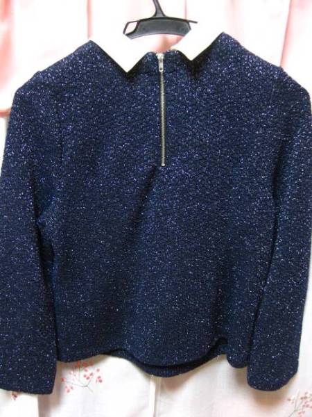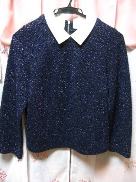 〈GLASS LINE/グラスライン〉 紺 ラメ入り 白襟 カットソー