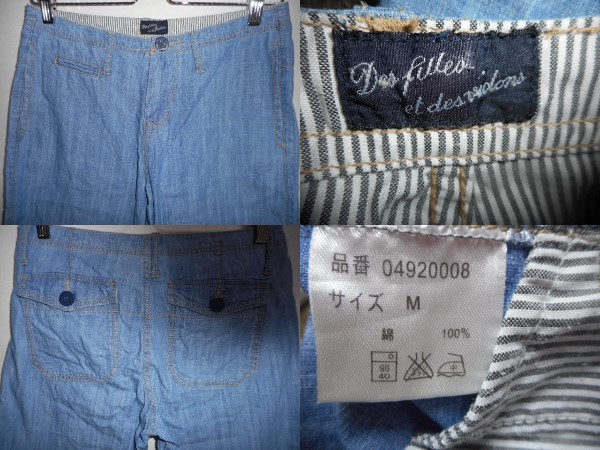 | des filles et des violons 綿ハーフパンツ M 実寸W72 キュロット インディゴブルー | |||