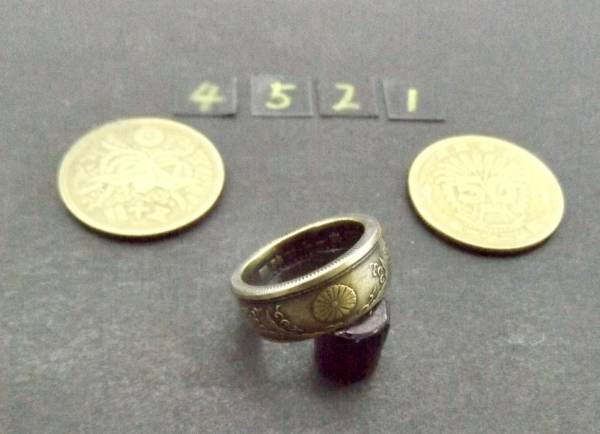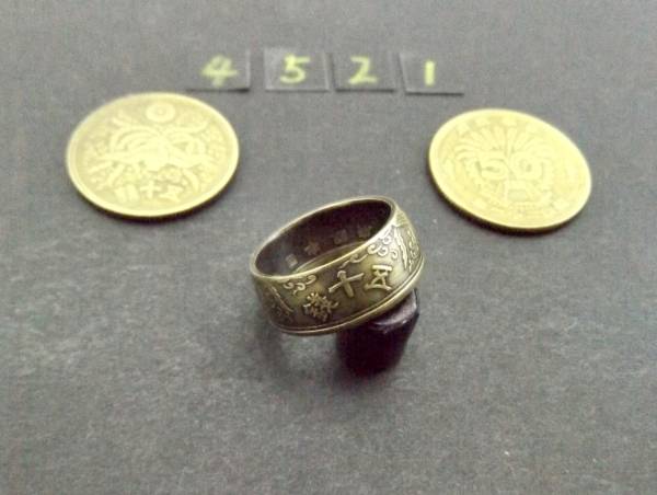 9号  コインリング  大型50銭黄銅貨使用  ハンドメイド手作り指輪  1点物です(4521)送料無料 他にも銀貨や銅貨の指輪を出品中
