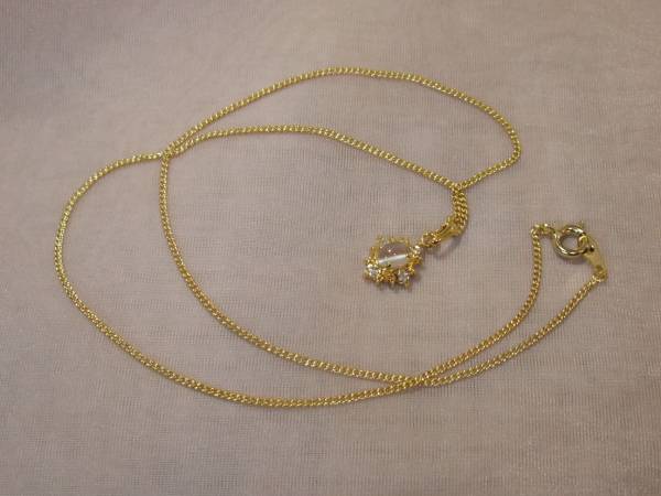 レトロクラシックシンプルなムーンストーンカボッションプチペンダントネックレス♪古いコスチュームジュエリー用のラインストーンと枠を使った可愛いネックレス♪定番のビンテージアンティークデザインの清楚な淑女系♪天然石を使用した古い時代のヴィンテージデザインがレトロ♪新古品未使用新品☆古い手持ちコレクションより処分☆