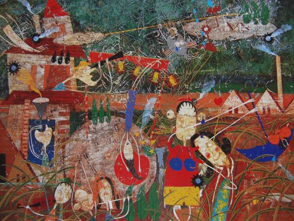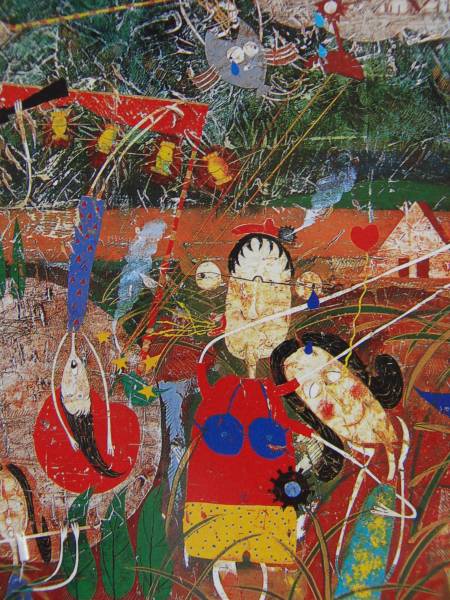 村岡顕美、【うた】、希少画集画、高級新品額・額装付、状態良好、送料無料