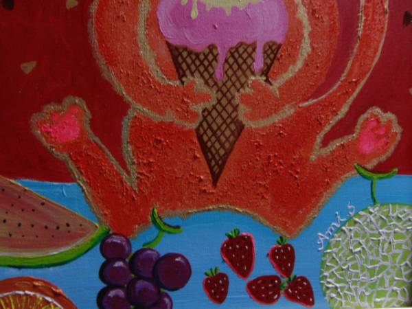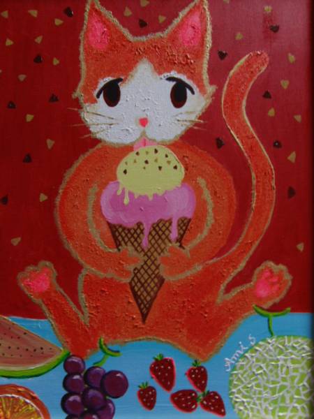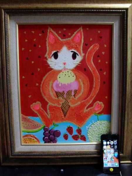 ≪国美協≫佐和山あみ、『アイチュねこ』、油彩画、F6号:40,9cm×31,8cm、油絵一点物、新品高級油彩額付、直筆サイン・真作保証付