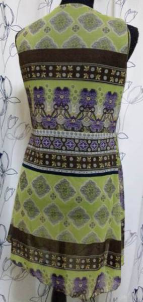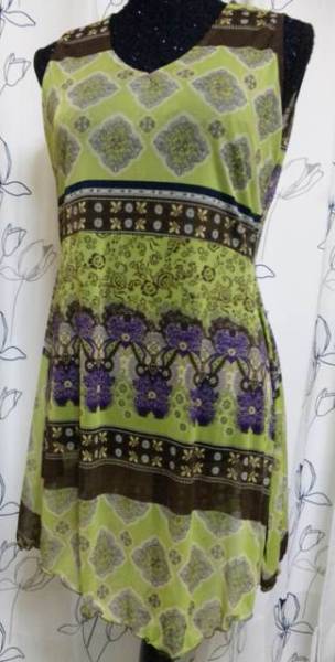 TAKUYA ブイネック シースルーチュニック 黄緑系 アジアン柄 M 美品  №325