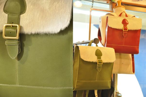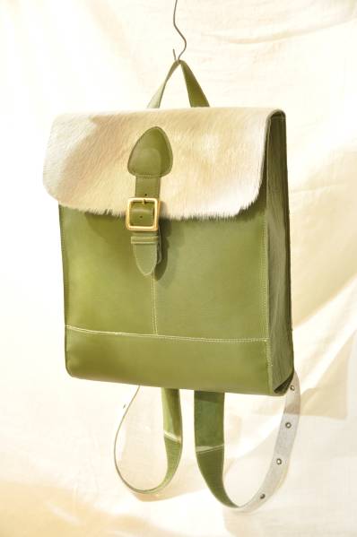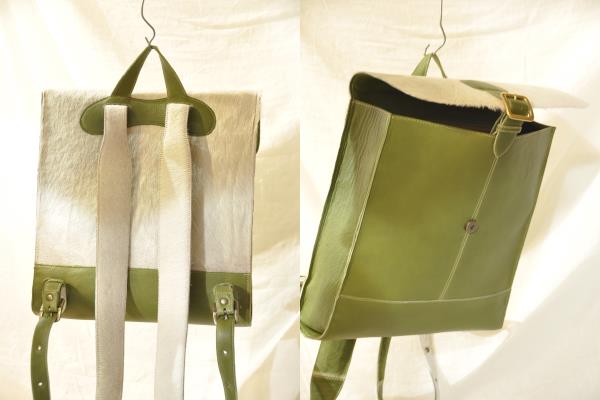 ハラコバックパック緑 レザーのリュックサック 送料無料