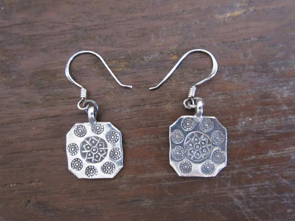 カレン族925シルバーで作られたお花の刻印が可愛いフックピアスです。