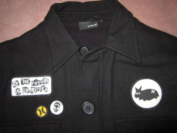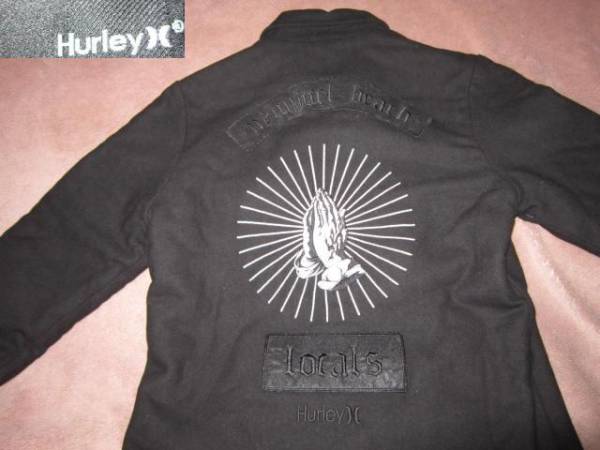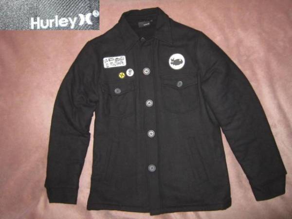 レア! Hurley ハーレー ゴッドハンド刺繍 ワッペン 裏ボア CPOシャツ ジャケット 黒 S