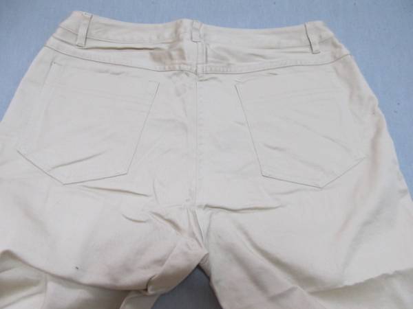 【表記サイズ】 42 【素材】 綿98% ポリウレタン2% 【平置き採寸】 ウエスト36cm 股上25cm ワタリ26cm 股下77cm 裾幅21cm あくまでも素人採寸なので御了承下さい 【使用感】 AB(多少使用感、保管ジワあるかも知れませんがまずまずのUSDE) N ・新品 S ・未使用品または未使用とみられる商品 A ・数回使用程度の非常にキレイな商品 AB ・多少の使用感があるが全体として状態のよい商品 B ・多少の汚れ、キズ、スレ、毛羽立ちなど、普通に使用感が見られる商品 BC ・ ある程度の使用感があり、傷みが目につく商品 J ・何らかの難あり訳ありがみられる商品 USDEの状態は個人差があります事をご理解ください。また、USDEの為シミ・・毛玉など見落とす可能性もあります。神経質な方のご入札はご遠慮願います。 商品は気を付けてチェックをしておりますが、見落とす場合もございますのでご理解願います。特に、皮製品・シルバー製品につきましては、保管時などに付いてしまうような僅かな小キズ等はご了承下さい。 他にも出品しています★ 管1Bゥ-で | ||