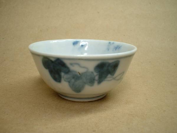 明治期頃の珍しい、朝顔、図 盃です。口径5.5×底2.5×高2.5センチです。