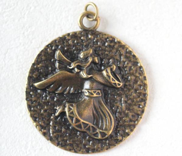 ■即決■大きめ 横向き妖精のラウンドプレート・メタルチャーム