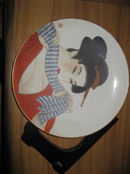 美人画の飾り大皿 直径31.5Cm 重さ1450g,