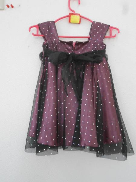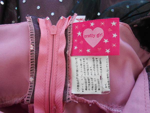 ●女の子 ピンクサテン&黒レースドレス キラキラドット size4