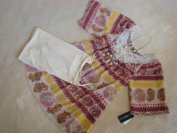 | ご覧いただきありがとうございます。 胸元のレース使いがかわいいチュニックです♪ ベージュのキャミ付で、重宝します☆ デニムやレギンスなどを合わせていただくと、 かわいく着こなせます。 サイズ表記はL、バスト86-94となります。 平置きサイズで、身幅50cm、着丈72cmとなります。 素人採寸ですので、多少の誤差はお許し下さい。 ネックレスは付いておりません。 |