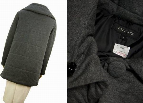 CO)美品*タルボット TALBOTS★人気グレー系×柔らかコットン素材★ふんわり中綿入り★大きめ美衿コート★Sサイズ(7号 36