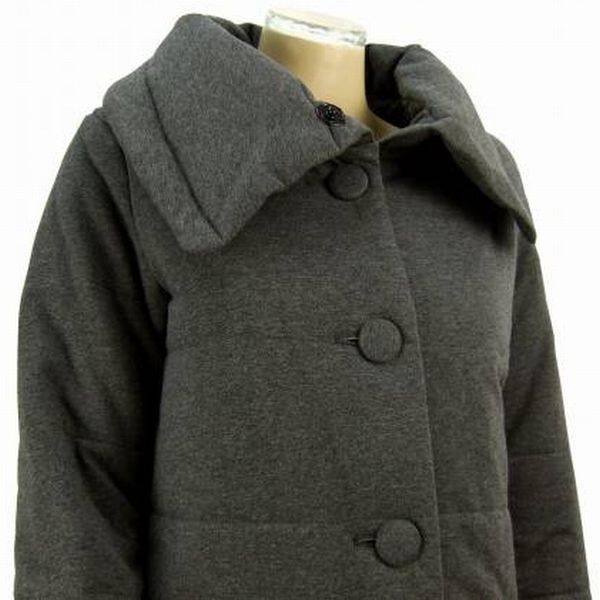 特徴:ふんわり柔らかな中綿入りコートです。人気のグレー系×程ゆるなスタンドカラー×くるみボタン留めの優秀コートです。 ---↓ここにサイズ記入----