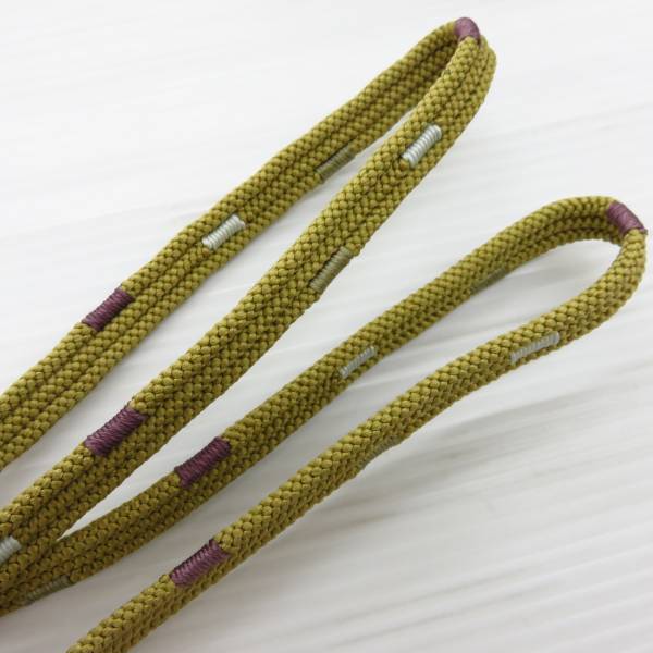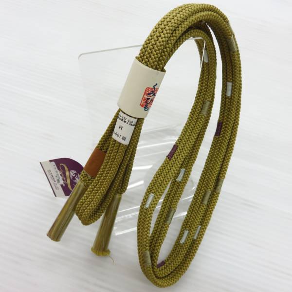 A26★新品即決 和装帯締め 帯〆 帯しめ無地 黄土色手組紐 正絹100% くみひも シルク100% 黄土色 帯じめ