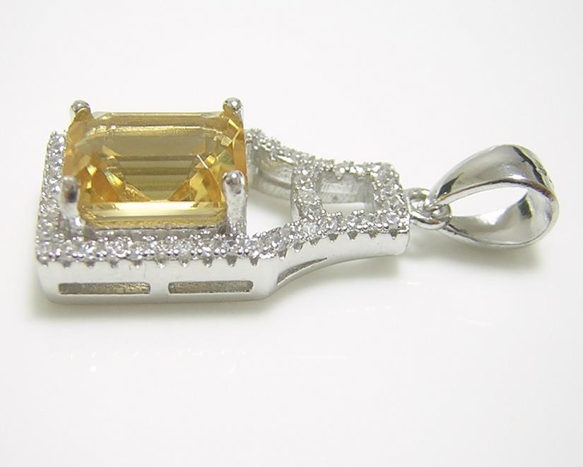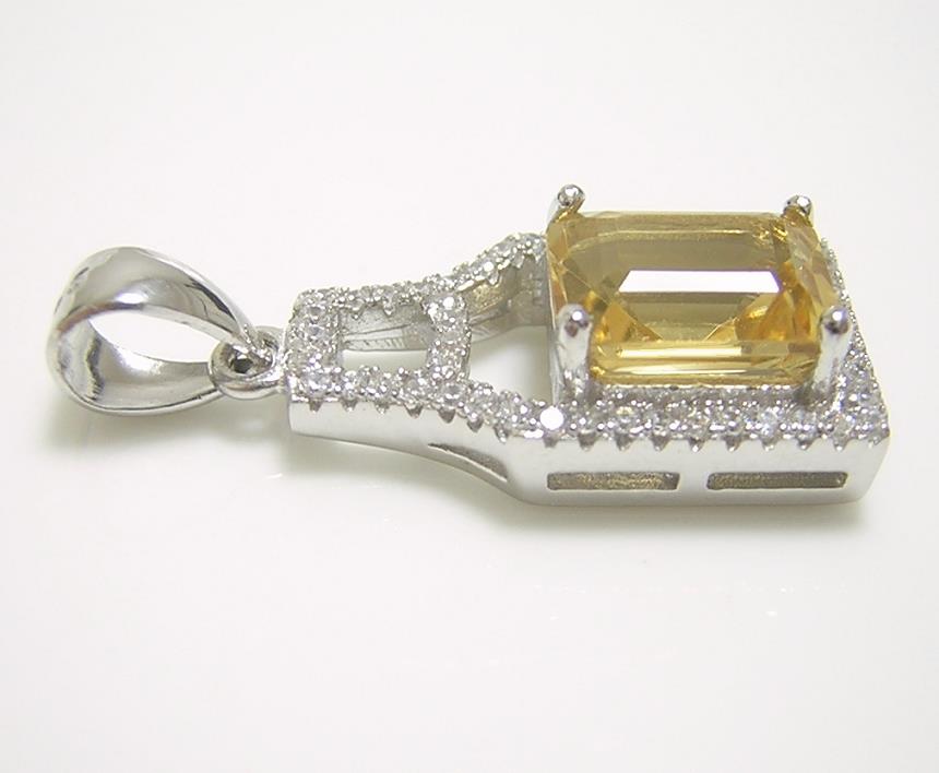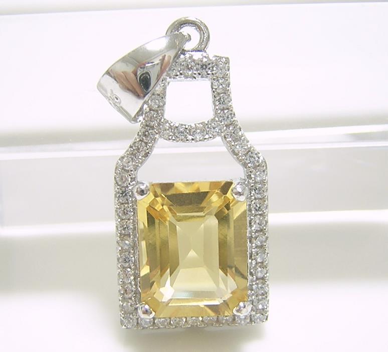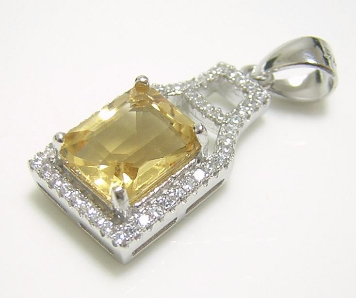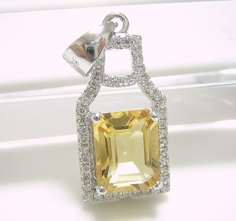 綺麗なオクタゴンカットの天然シトリンとキュービックジルコニアを使用したペンダントトップです。